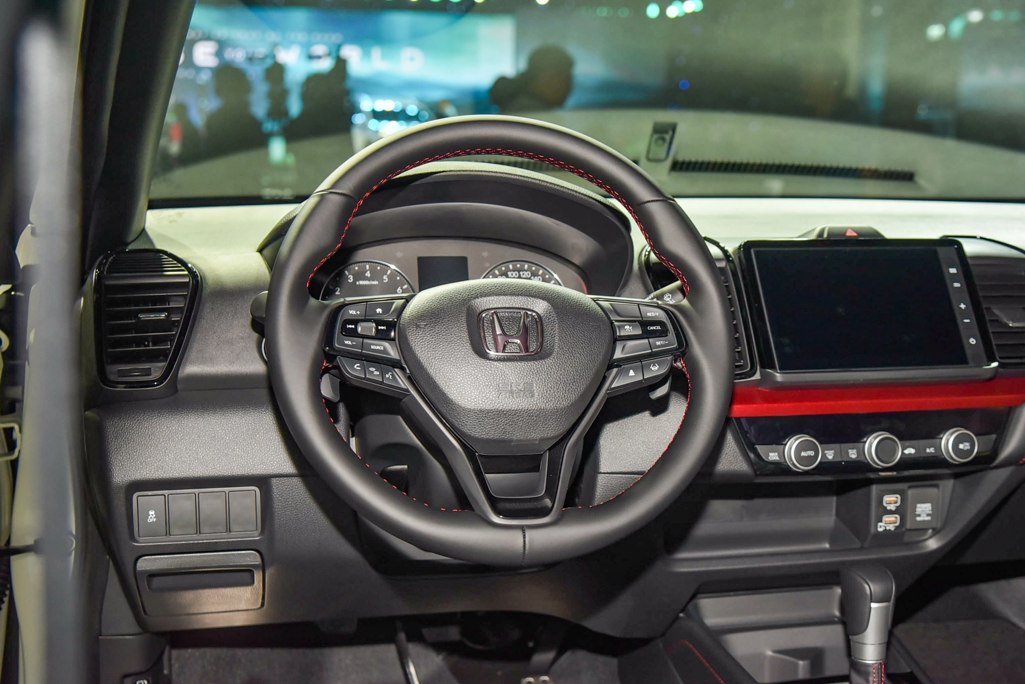 Honda City RS sử dụng vô lăng 3 chấu bọc da, tích hợp các nút điều khiển đa thông tin như chỉnh ẩm thanh, đàm thoại rảnh tay & ra lệnh bằng dọng nói, Cruise Control.